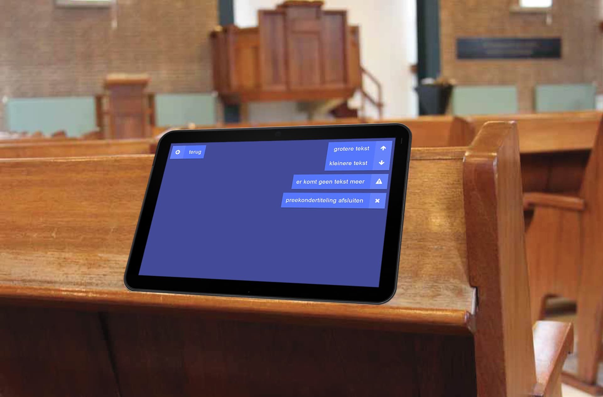 4. De tekst verschijnt op de tablet van de gebruiker; in de kerk of thuis